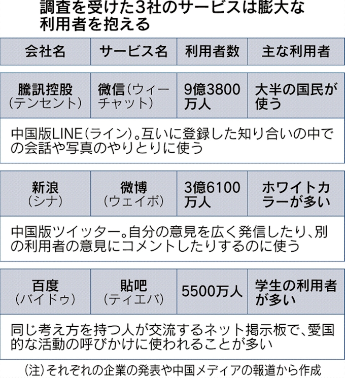 中国 ネット大手一斉調査 テンセント 新浪 百度 日本経済新聞