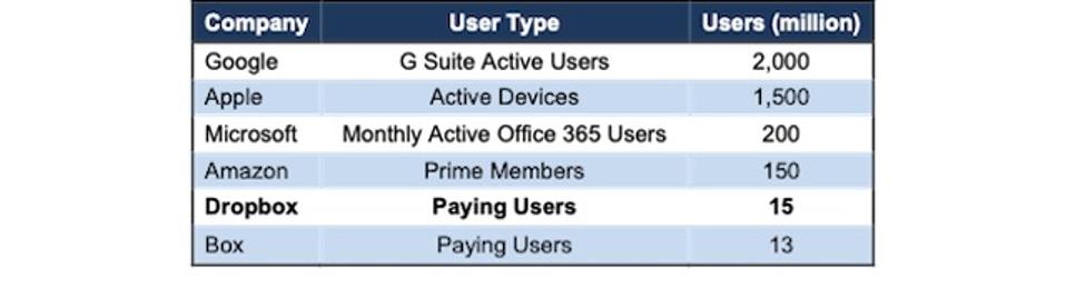 Doing the math the stock price implies Dropbox can acquire 44 million paying users, equal to 30% of Amazon Prime members and 22% of Microsoft Office 365 subscribers More Revenue Decline Expected. In other words, Dropbox now brings more to the table than it used to, only a couple of years ago But maybe even more important, an acquisition of Dropbox would bring 600 million registered users to Microsoft – granted, some of whom probably overlap with Microsoft’s existing user base.