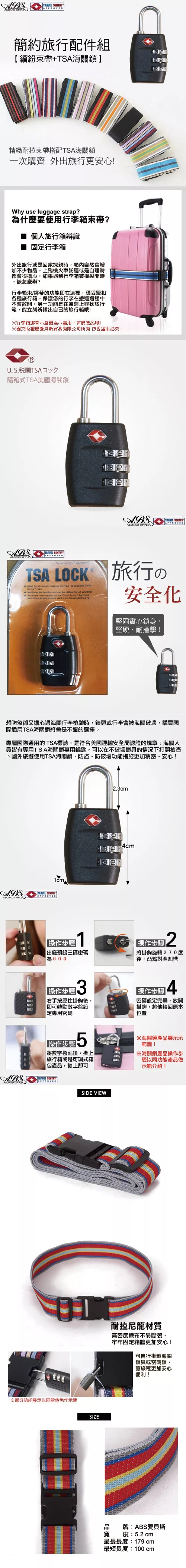 Abs愛貝斯台灣製造繽紛旅行束帶tsa海關鎖配件組 99 018a13 Pchome 24h購物